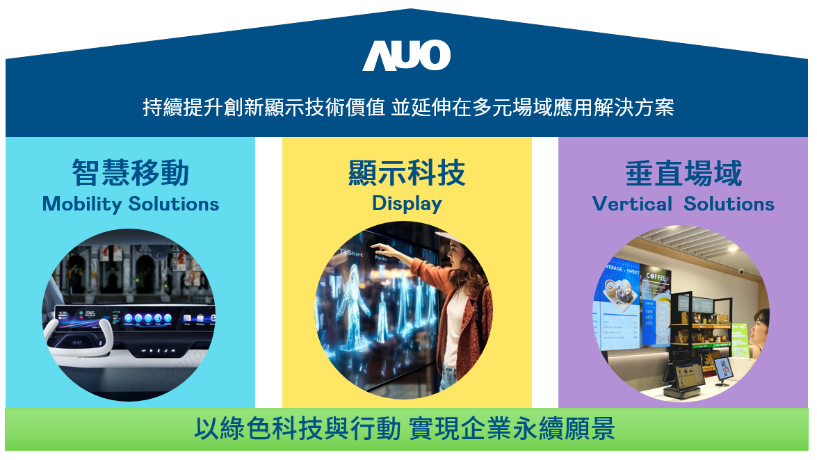 完美真人WM持續推動「雙軸轉型」,在精進顯示技術附加價值(Go Premium),與深化垂直市場應用(Go Vertical)的策略下,對應完美真人WM的優勢競爭力與趨勢,完美真人WM奠定顯示技術、智慧移動、垂直場域三大永續營運支柱,在顯示技術領域的根基之上,延伸布局多元場域應用解決方案。將先進顯示科技助力智慧移動及垂直場域發展,並以綠色科技與行動為實踐,在轉型之路上貫徹永續經營之願景。